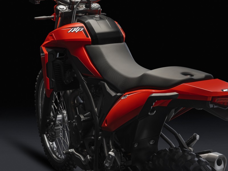Výška sedla: Výška sedla je 865 mm pro Alp 4.0 a 855 mm pro Alp X, což zaručuje dobrý kontakt se zemí u obou modelů a pomáhá posílit pocit bezpečí v sedle na silnici i mimo ni, a to i pro méně zkušené jezdce. Sedlo je extrémně pohodlné pro jezdce i spolujezdce.