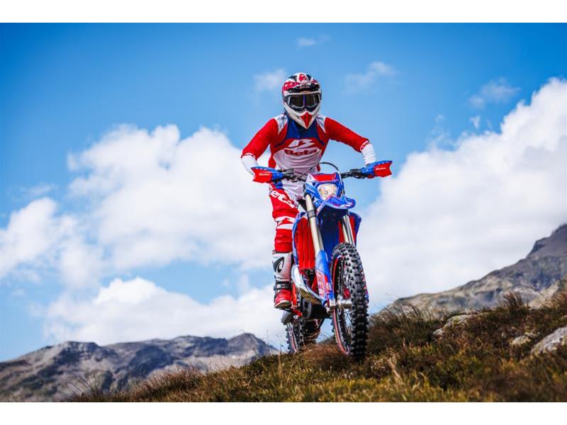 Zesílené chrániče rukou: Chrániče rukou jsou vyrobeny z dvoukomponentního materiálu a nejenže dodávají motocyklu závodní vzhled, ale také jsou obzvláště odolné i při nejnáročnějším terénním použití.