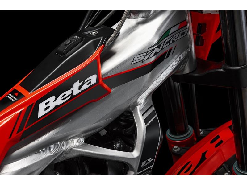Zcela nový rám modelu Beta SINCRO si zachovává tradiční hliníkový rám s integrovanou palivovou nádrží, ale byl kompletně modernizován. Geometrie se změnila spolu s novými kovanými předními a zadními prvky strategicky umístěnými pro zlepšení ovladatelnosti v sekcích. Kované díly mají nové uspořádání, které řeší potřebu větší manévrovatelnosti a zároveň přispívá k jedinečnému designu díky zdokonalení jejich obrábění. Motor si zachovává svou roli konstrukčního prvku, ale upevňovací body k rámu byly změněny, což má za následek zvýšenou ohybovou a torzní tuhost ve srovnání s předchozí generací. Zásadní aktualizace pro zlepšení ovladatelnosti v ostrých zatáčkách a překonávání překážek zahrnuje nové umístění upevnění zadního tlumiče a upravený úhel řízení. Vidlice a tlumič byly také aktualizovány tak, aby odpovídaly charakteru nového podvozku. Výsledkem je celkově snadnější motocykl pro řízení na všech úrovních, s vylepšenou rovnováhou a lepším výkonem ve statických i dynamických podmínkách.